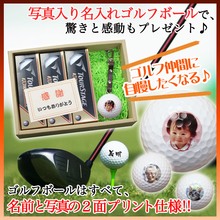 ゴルフボール 名入れ JAPAN トップページ > ゴルフ用品 ゴルフグッズ一覧 > ゴルフボール > ギフト 【写真・ロゴ入り】 ゴルフボール9個&キーホルダー ブリヂストン タイトリスト スリクソン キャロウェイ ホンマ テーラーメイド プレゼント 還暦祝い